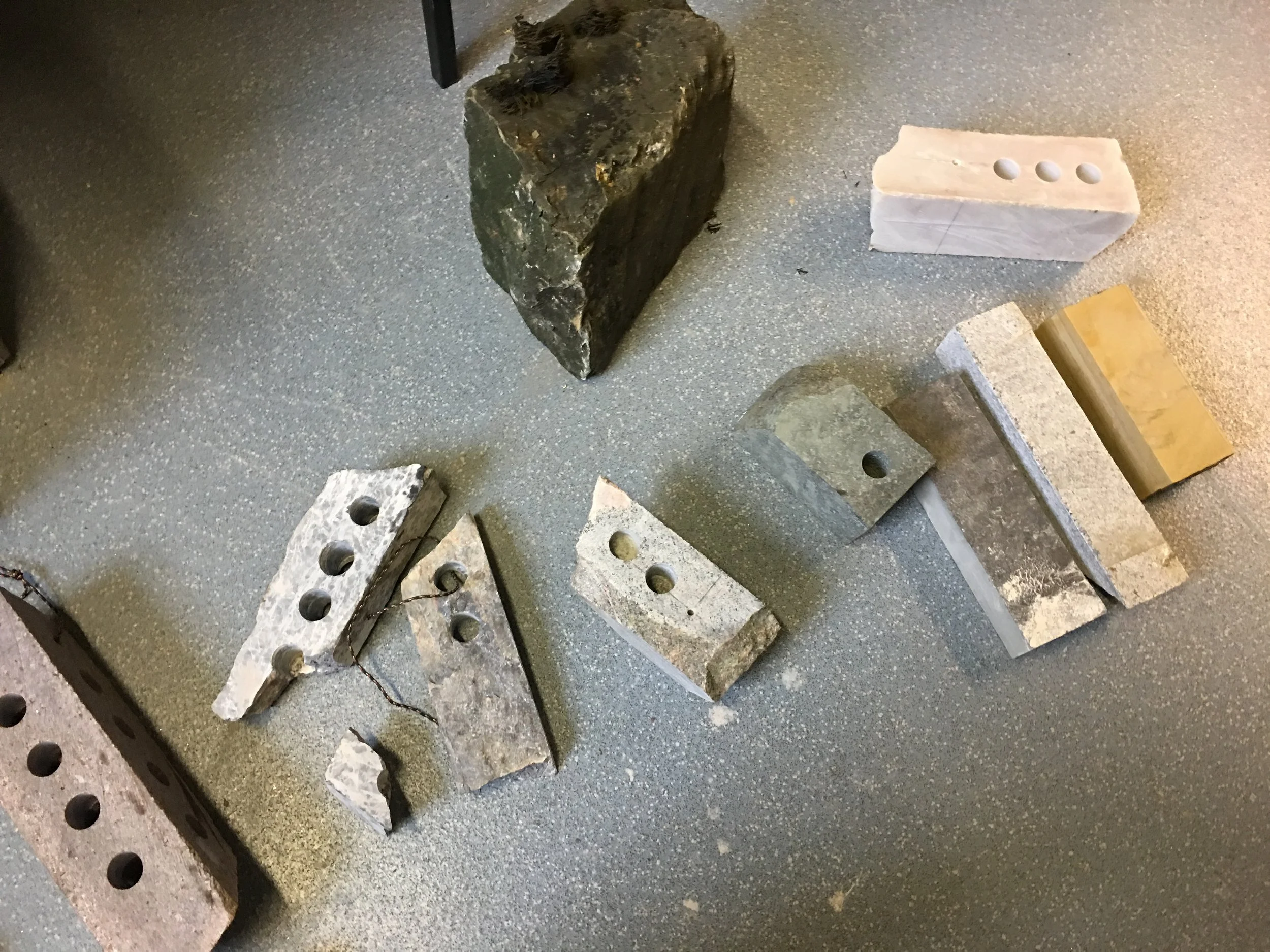 We are exploring the acoustic resonance of natural stone and working with the honing of those stones to amplify their qualities. Only then will they take their place in an installation.