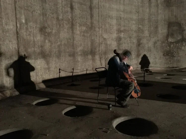 In the first visit we experimented with the acoustic qualities of the space. The resonance was remarkable with the overall ‘echo’ effect being 12 seconds. We also felt that the sound moved around the space and was particularly interesting close to the circular walls. The players than improvised and in doing so were able to heard how the long duration of sounds and notes could add to a form dense harmonic textures. At the same time solo instruments were given a duration and edge which required certain approaches to playing. The outtake were remarable and were edited into the album HARK at the Silo which is available on Spotify or from this website. The instrumentation was cello, sax, violin and voices. The track Polyphony using voices in a rendition of a Renaissance piece Sicit Cervus by Palestrina reflects the influence of the playing of sax players Jan Garbareck and Ralph Imbert.
